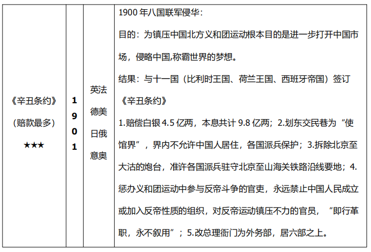 1.1900 年八国联军(日、美、奥匈帝国、英、法、德、意、俄)攻占大沽炮台,7月攻陷天津,8 月占领北京。